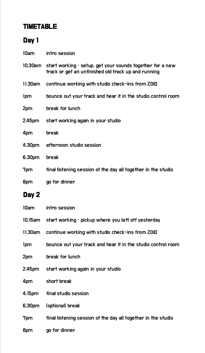 Here's your chance to spend 2 whole days there working on a track, with guidance and mentorship from me, ZOiD, feedback sessions, hanging out in the evenings with the other participants, using some iconoic pieces of gear listed below (if you want).